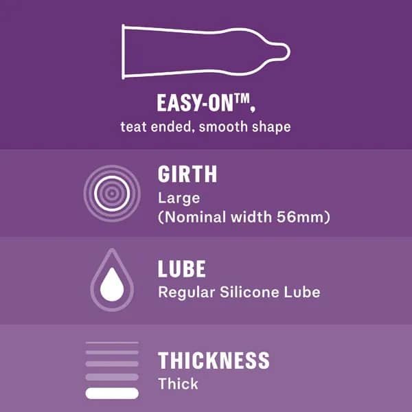 - Easy-On Shape. Durex Easy-On condoms are shaped to be easier to put on and more comfortable to wear.