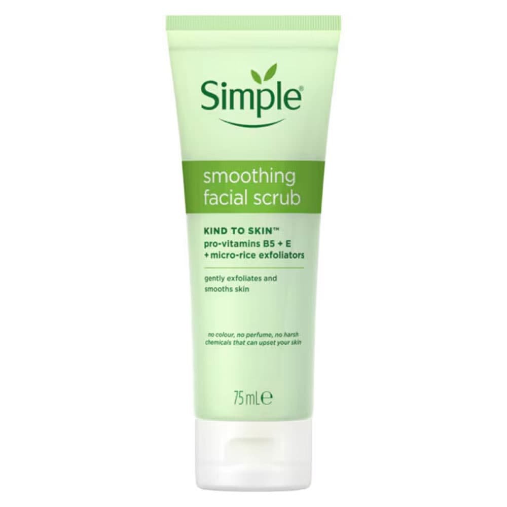 Simple Kind To Skin Smoothing Facial Scrub Contains No Artificial Perfume Or Colour And No Harsh Chemicals That Can Upset Your Skin. It Does Not Dry Out Or Irritate Skin, And Can Be Used As Part Of Your Regular Skin Care Routine – Even On Sensitive Skin. Your Skin Is Left Feeling Clean, Fresh, And Exfoliated. This Exfoliating Face Scrub Is Hypoallergenic, Non-Comedogenic, Dermatologically Tested And Approved, And Suitable For All Skin Types.