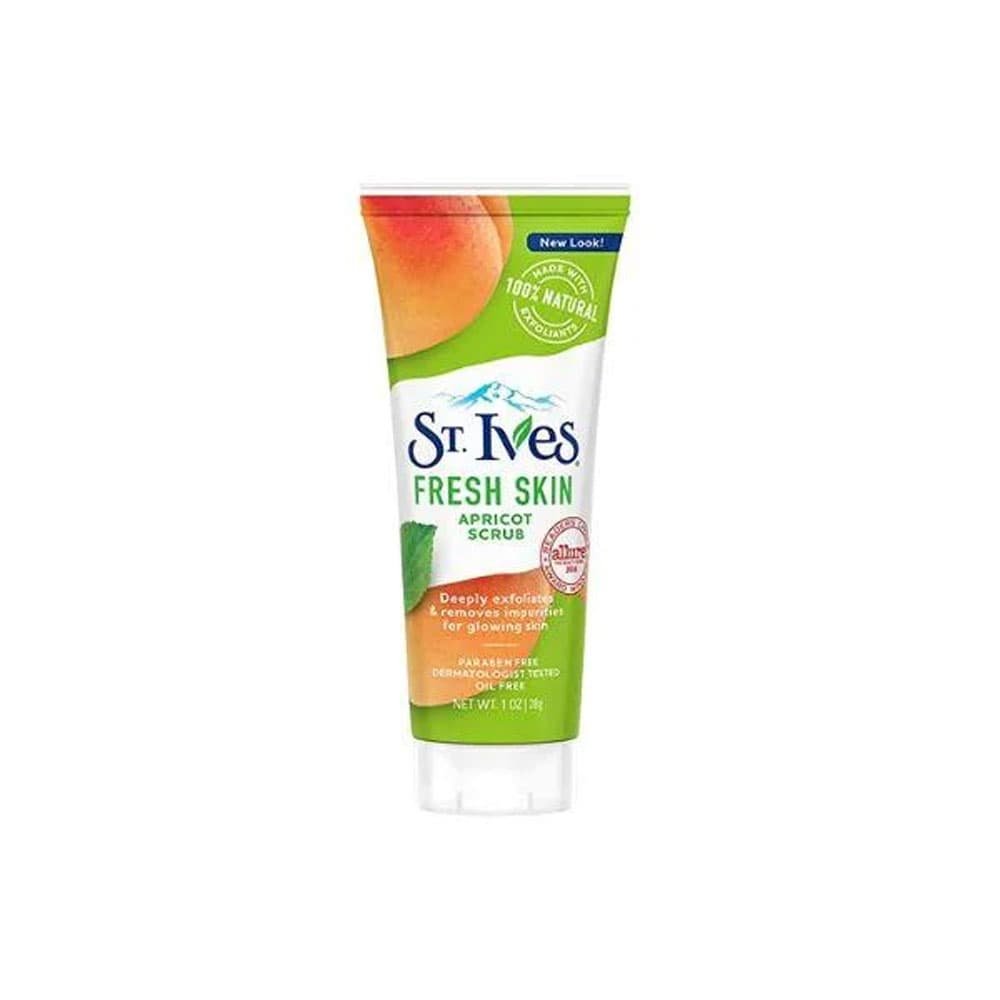 - St. Ives Fresh Skin Apricot Face Scrub is dermatologically tested, oil-free & non-comedogenic (meaning it doesn’t block your pores)