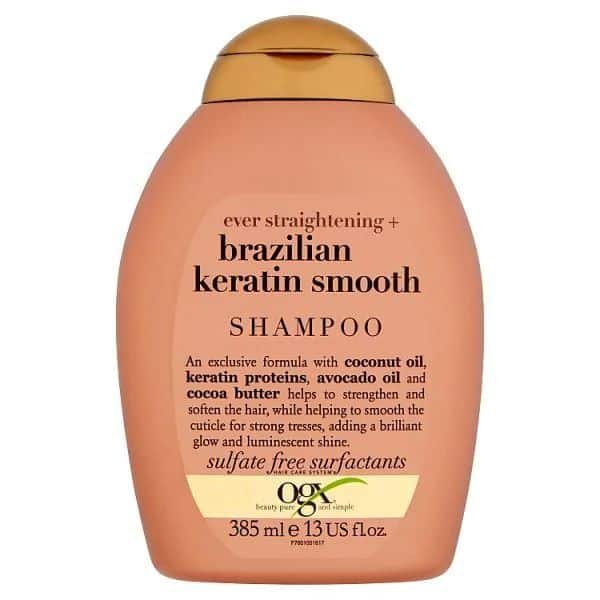 OGX’s Brazilian Keratin therapy shampoo is an exclusive blend of antioxidant rich coconut oil along with lush keratin proteins to help strengthen and soften the hair, while avocado oil and cocoa butter smooth the cuticle for straight, strong tresses, adding a brilliant glow and luminescent shine.