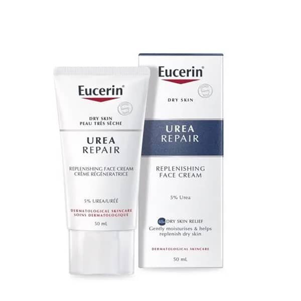 Eucerin Dry Skin Replenishing Face Creme 5% UREA is a light and gentle everyday moisturiser for dry to very dry skin. Enriched with Urea and Lactate, two naturally occurring compounds that bind in moisture, it instantly hydrates dry facial skin, reducing the feeling of tightness to give it a smooth and supple feel. Rough skin is usually caused by a lack of moisture, Eucerin Dry Skin Replenishing Face Cream 5% UREA reduces this roughness by maintaining skin hydration. It is ideal for use under make-up or after shaving.